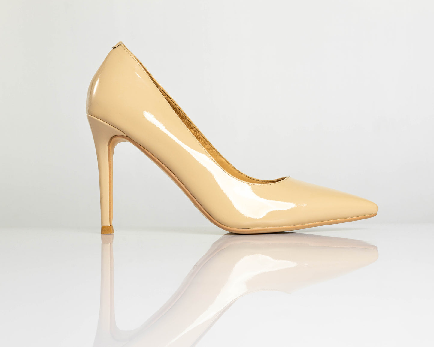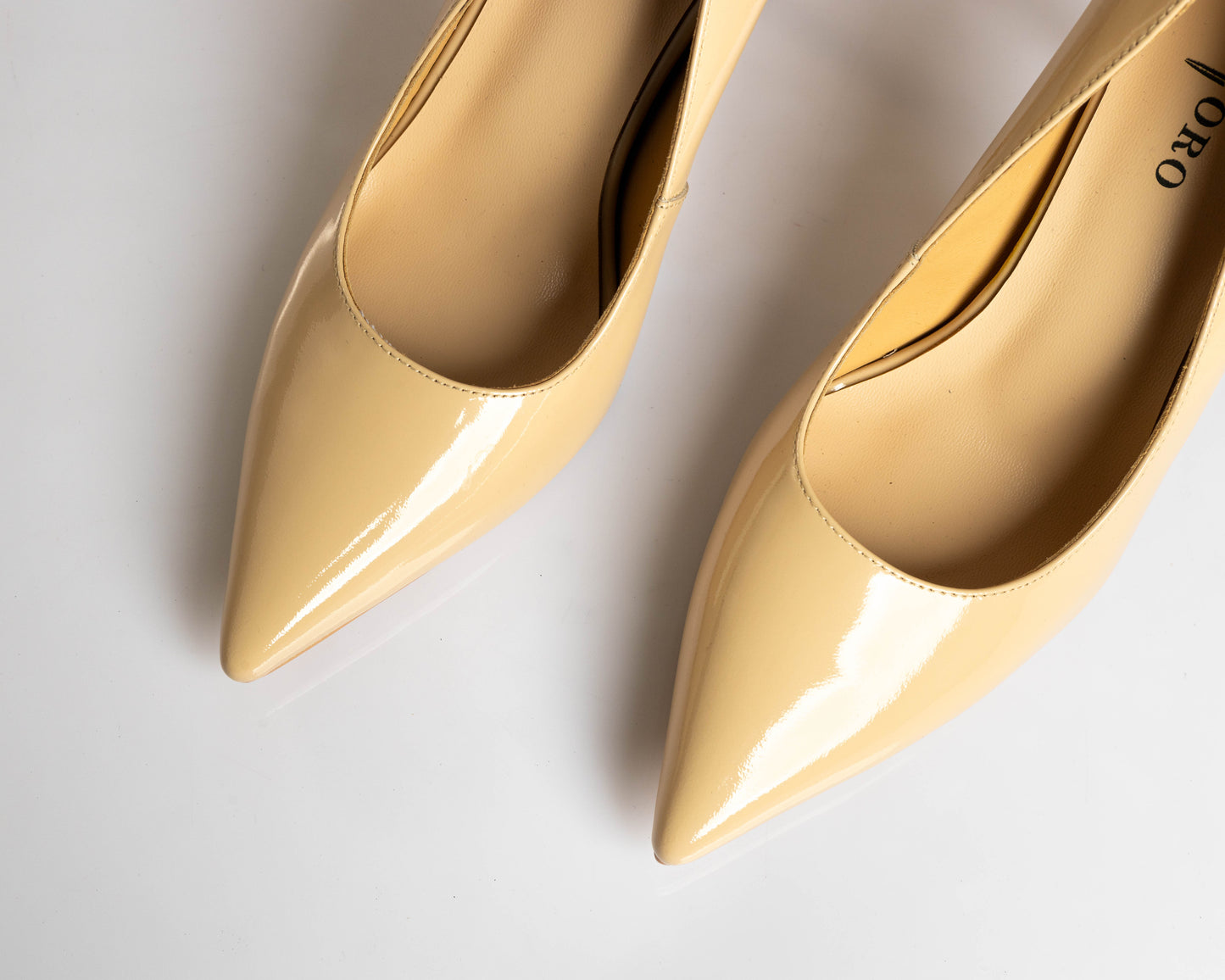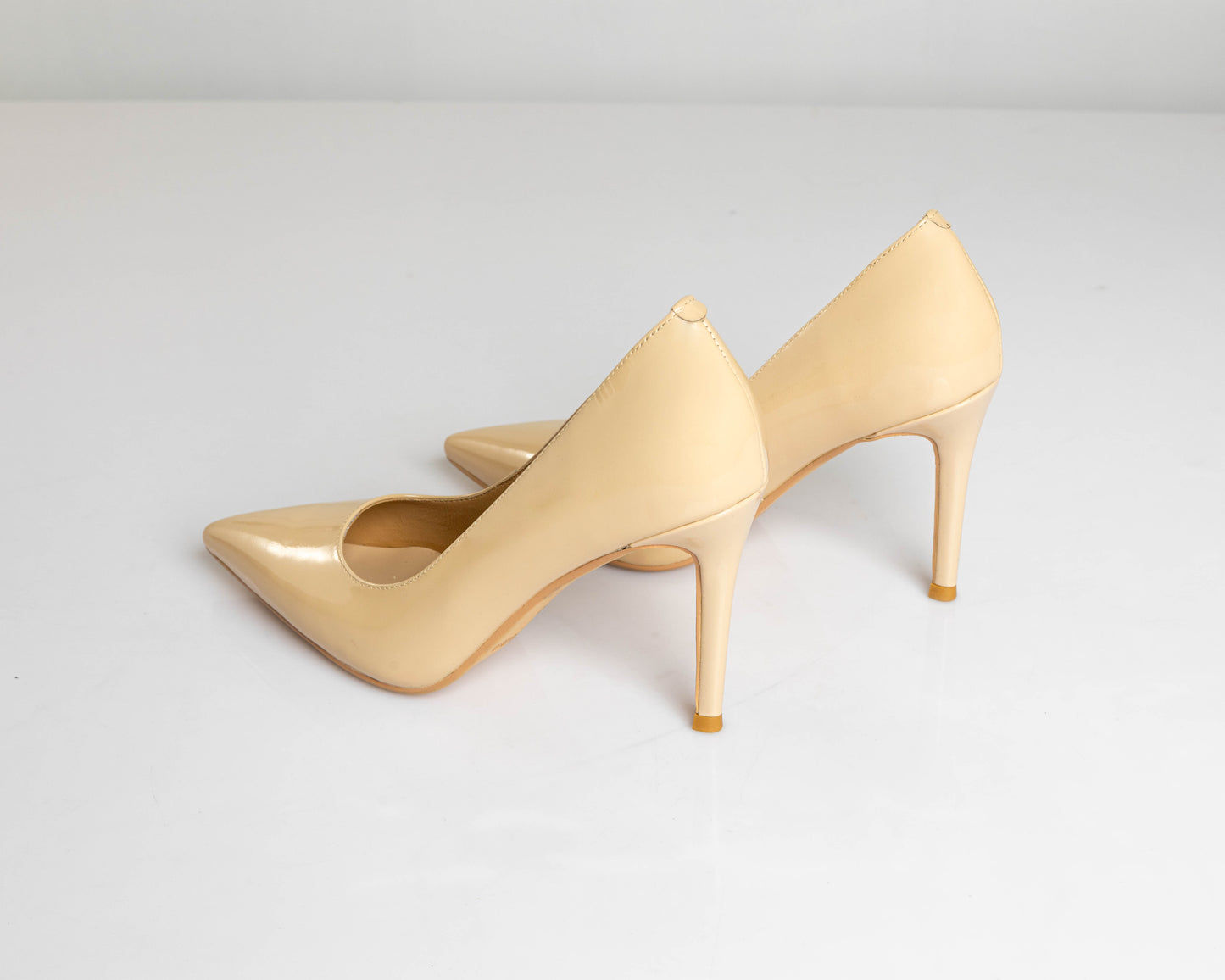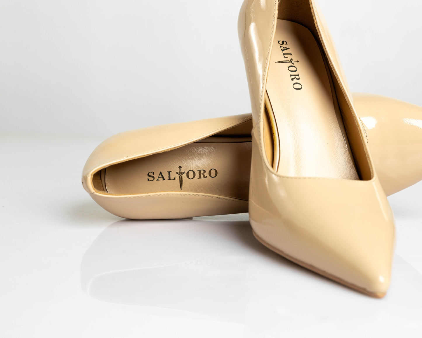 Introducing our exquisite beige patent leather high heel pumps from Saltoro, a ready-to-wear shoe brand proudly crafted under the parent brand Barismil. The ultimate addition to your footwear collection. Made from high-quality genuine patent leather, these pumps shine with sophistication and style. The sleek design features a pointed toe and a stunning heel that elongates your legs and complements any outfit.