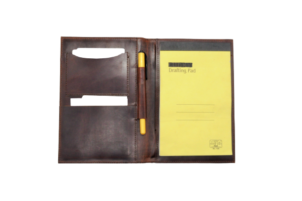 This compact and stylish leather padfolio is designed for convenience and functionality, perfect for on-the-go professionals. With a sleek design and thoughtful layout, it holds all your essentials, including a 6" x 9" notepad, in a slim, professional package. Ideal for meetings, note-taking, and daily organization, this padfolio is a blend of practicality and elegance.